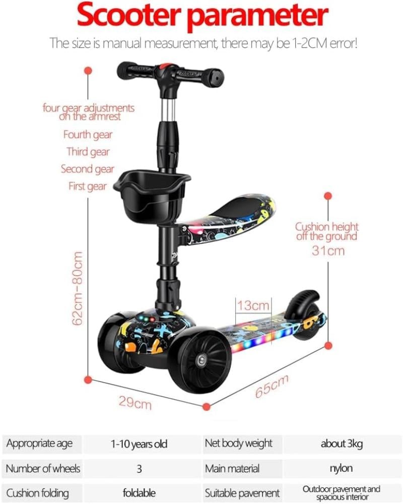 قدمي لطفلك تجربة ممتعة وآمنة مع افضل سكوتر سكوتر كيك من دي ام جي، قابل للطي ويتميز بثلاث مستويات للارتفاع لتناسب نمو الطفل، مزود بعجلات LED ووسادة مقعد قابلة للإزالة لتجربة ركوب سلسة ومتنوعة.