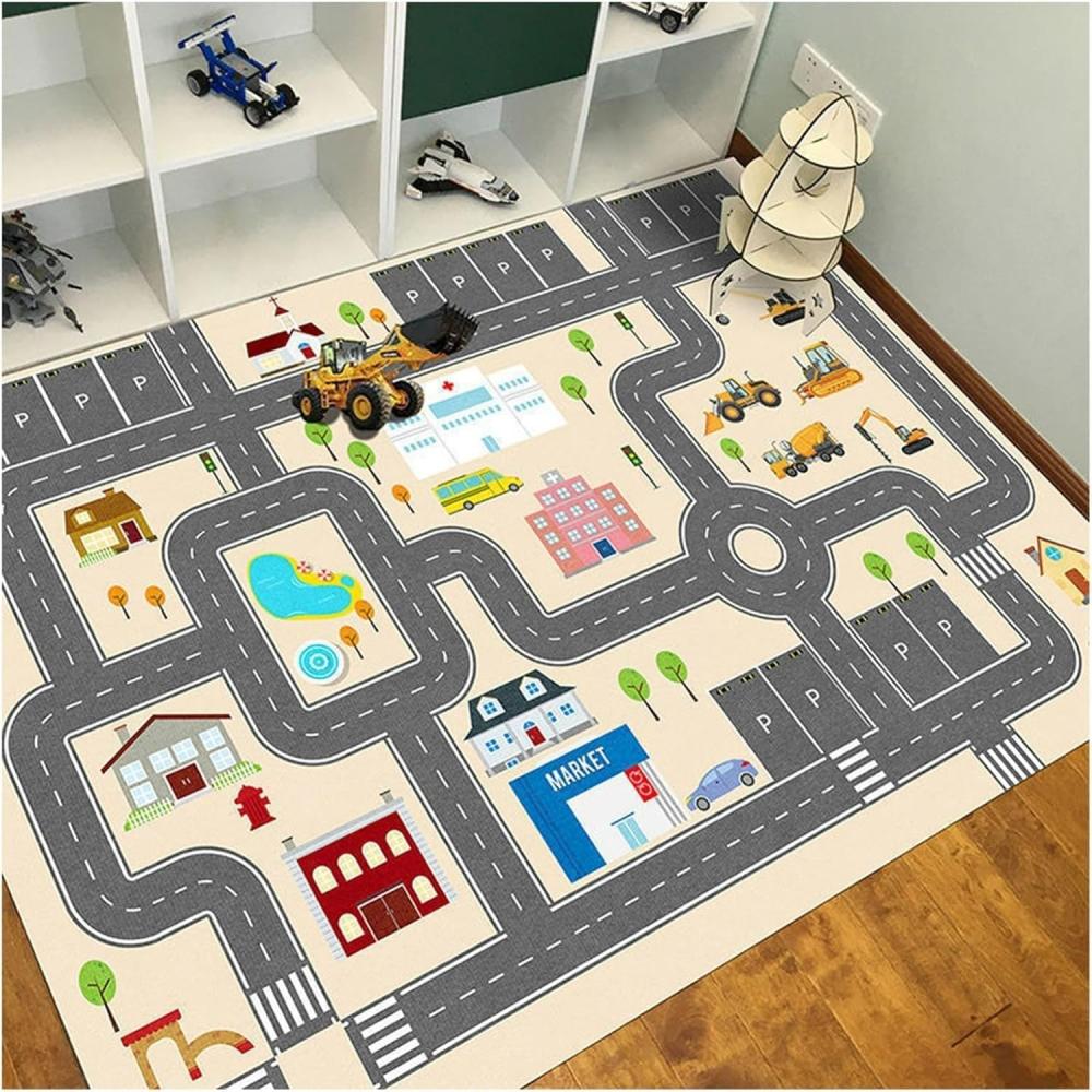 اكتشفوا عالم المرح والتعليم مع سجادة لعب للاطفال المصممة لتوفير مساحة آمنة وتفاعلية للعب السيارات الصغيرة والقطارات. تجمع بين المرح والتعلم، وتساعد على تنمية مهارات الأطفال في التخطيط وفهم المدن ومبادئ السلامة المرورية بطريقة ممتعة.