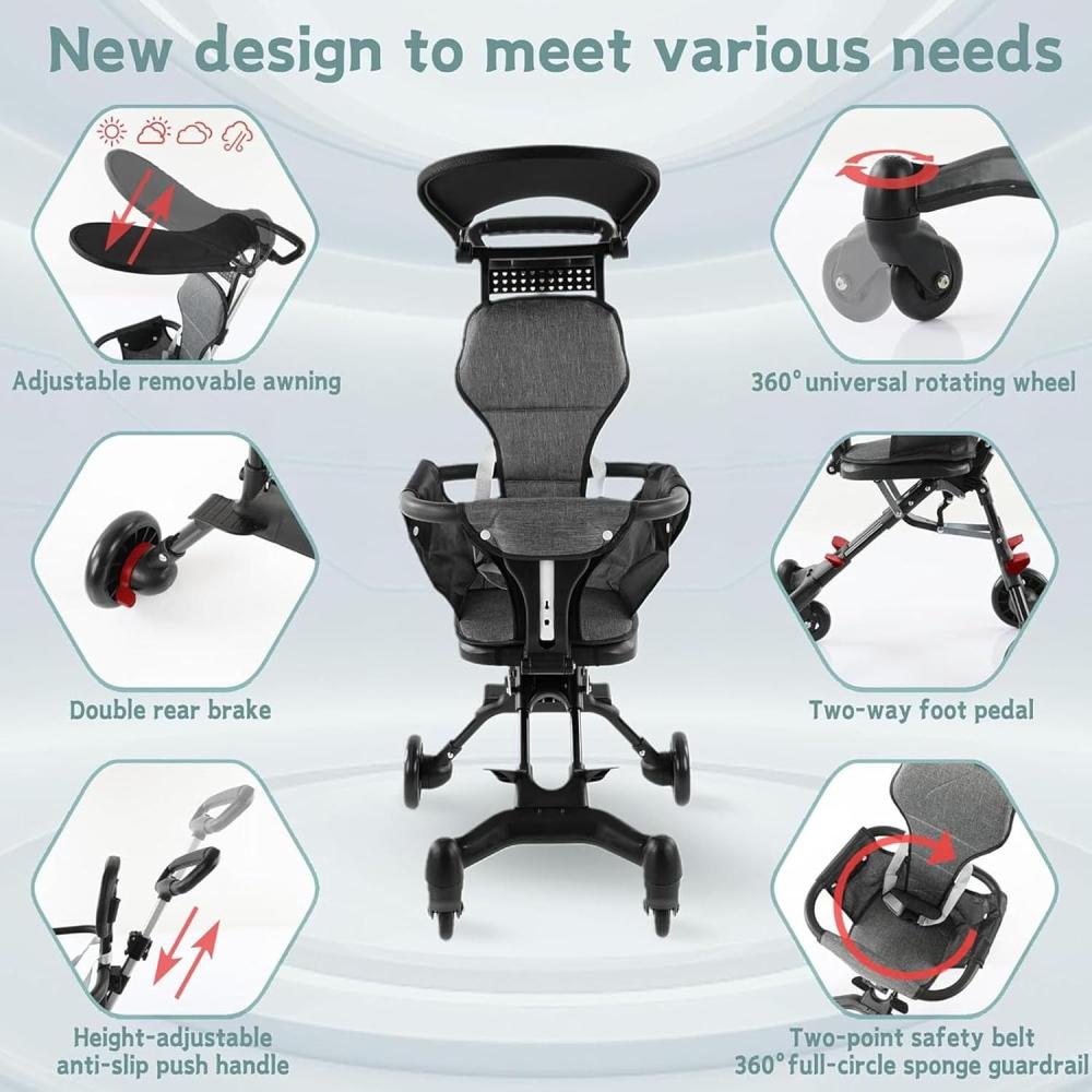 - مقعد قابل للعكس ليجلس الطفل مواجهًا للوالدين أو لمشاهدة العالم حوله