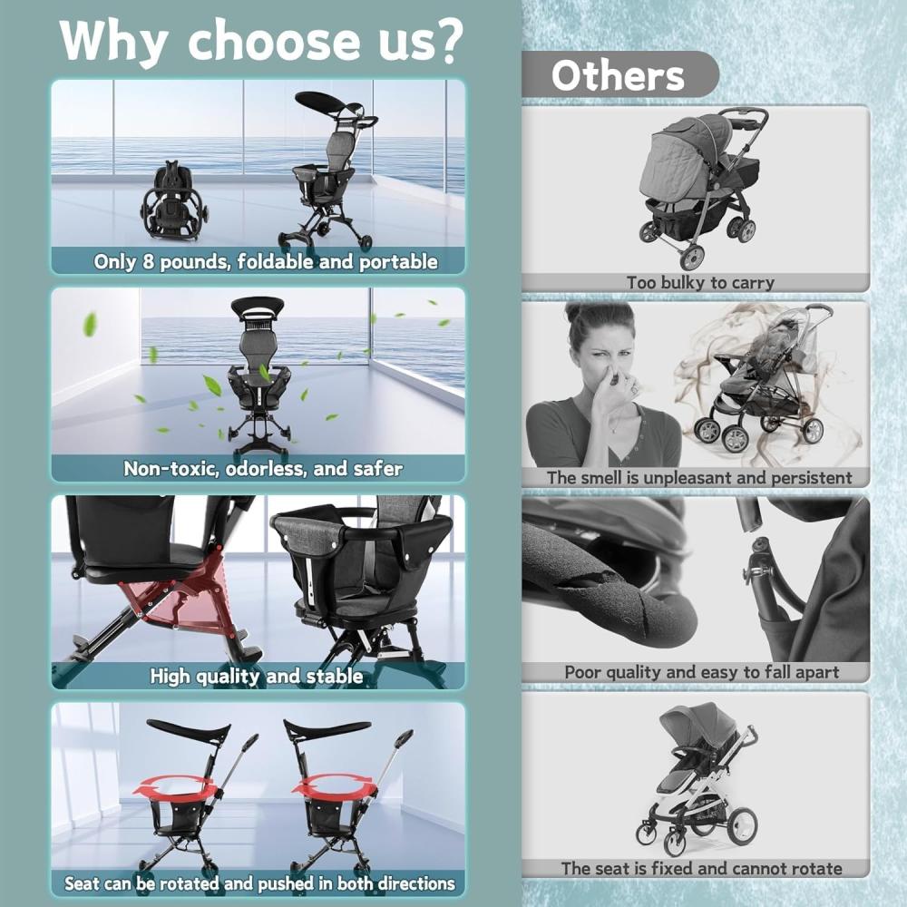 - الإضافات: مظلة صغيرة وقابلة للتعديل، عجلات أمامية دوارة 360°