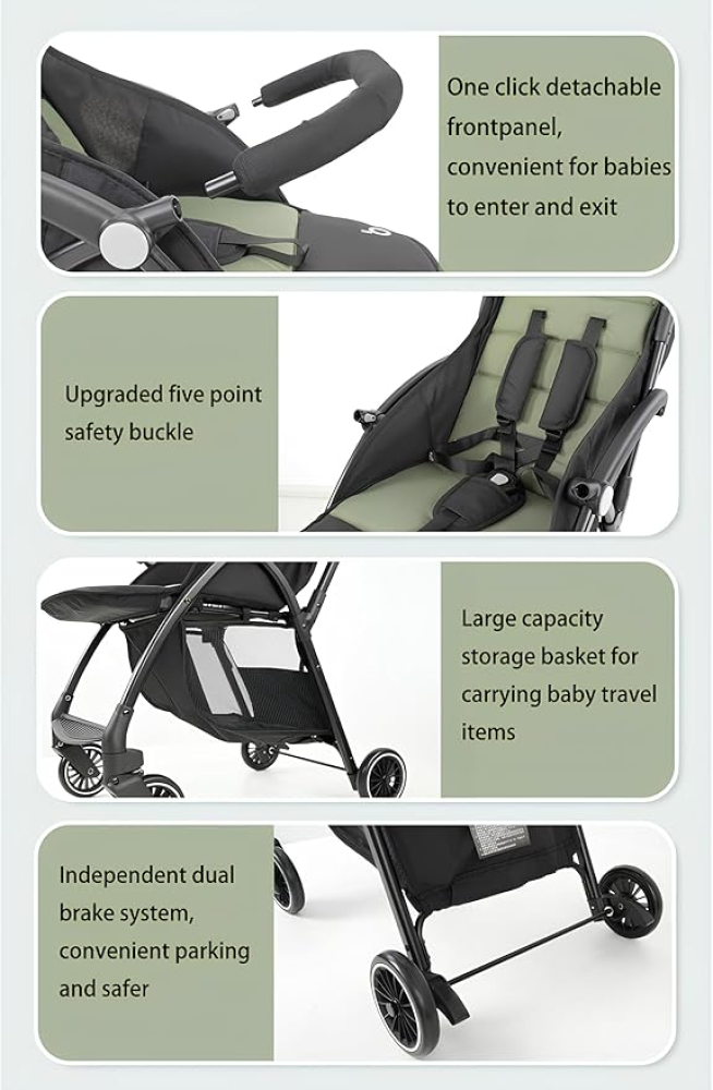 عربية اطفال خفيفة الوزن عربة الأطفال خفيفة الوزن من XMSISKXJ مناسبة للأطفال من عمر الولادة وحتى 3 سنوات، تجمع بين سهولة الاستخدام، الأمان، والراحة. تأتي بتصميم قابل للطي مع سلة تخزين وحزام أمان 5 نقاط لضمان تجربة تنقل آمنة ومريحة للطفل أثناء السفر أو التنقل اليومي.